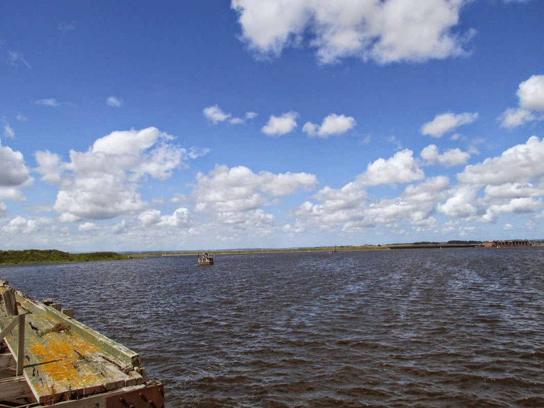 The view from the lock and on to the Manchester ship canal and then the River Mersey and Liverpool in the background.