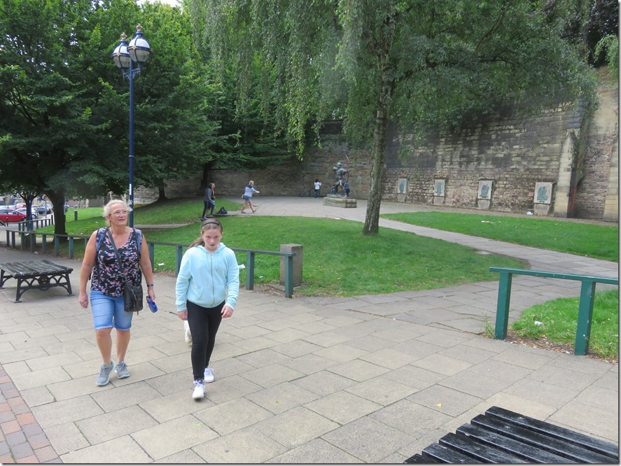 With number one Granddaughter up with us we decided to go and have a look around Nottingham Castle . With the temperature in the low 20s and near to 30 deg C in the boat there was no way we could leave Hamish aboard so the lucky Lad came with us.